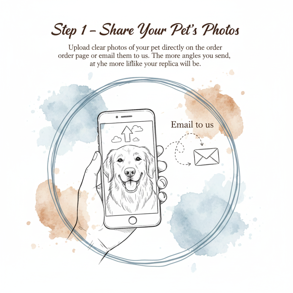 Upload clear photos of your pet directly on the order page or email them to us. The more angles you send, the more lifelike your replica will be.