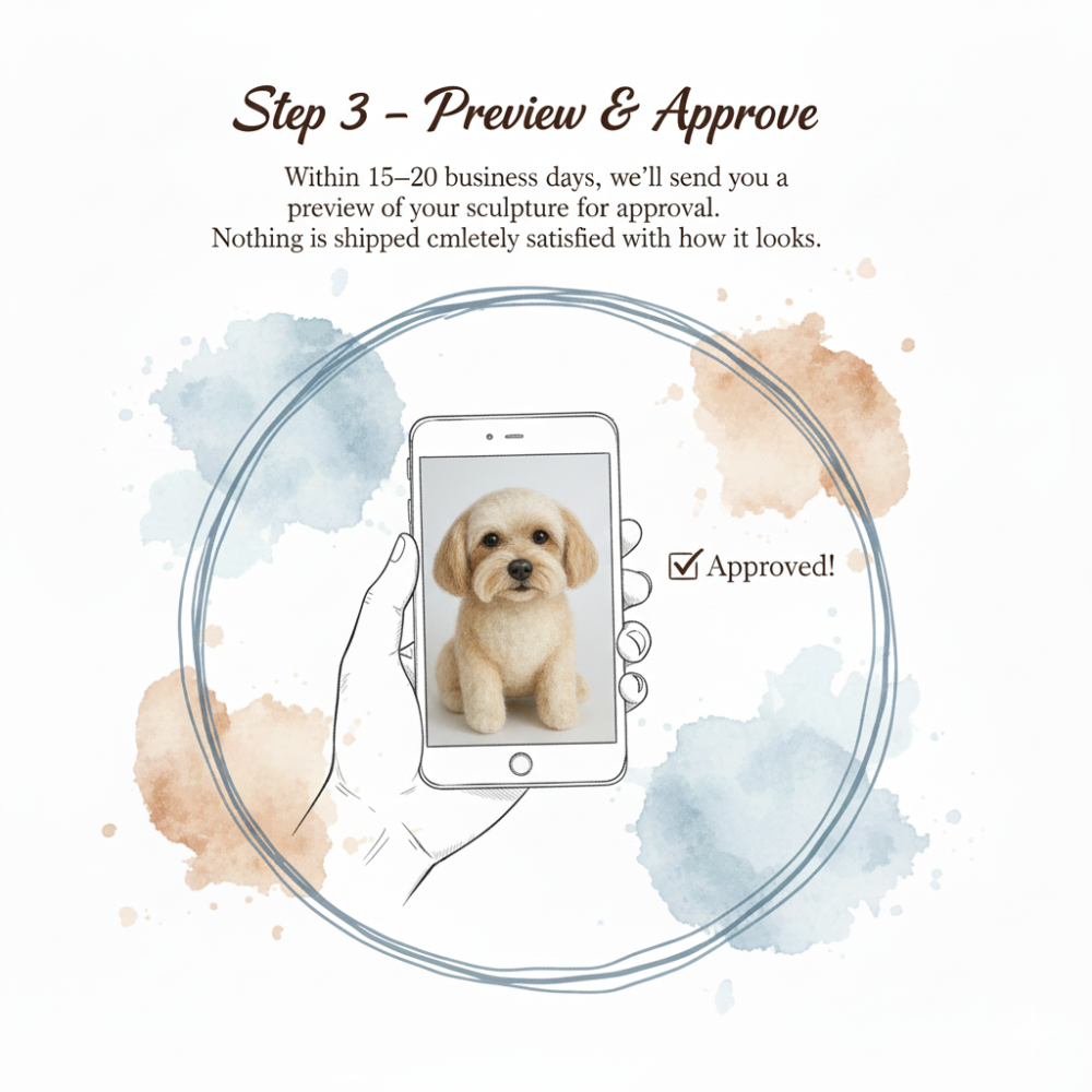Within15–20 business days, we’ll send you a preview of your sculpture for approval. Nothing is shipped until you’re completely satisfied with how it looks.