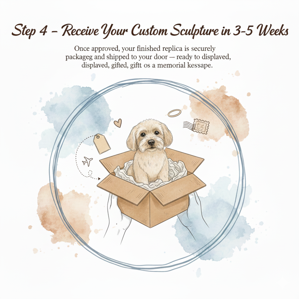 Once approved, your finished replica is securely packaged and shipped to your door — ready to be displayed, gifted, or cherished as a memorial keepsake.